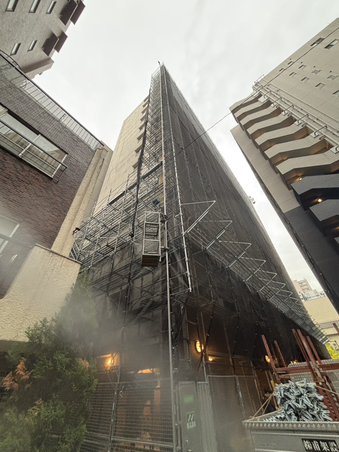 東京都中央区 マンション大規模修繕足場工事【くさび式本足場】