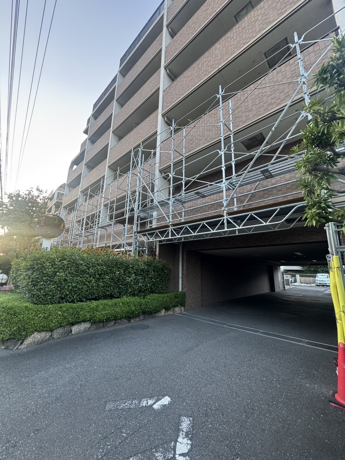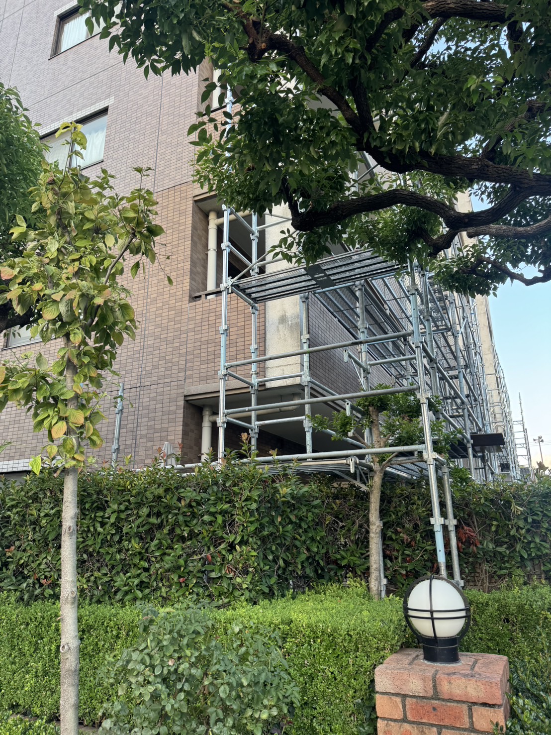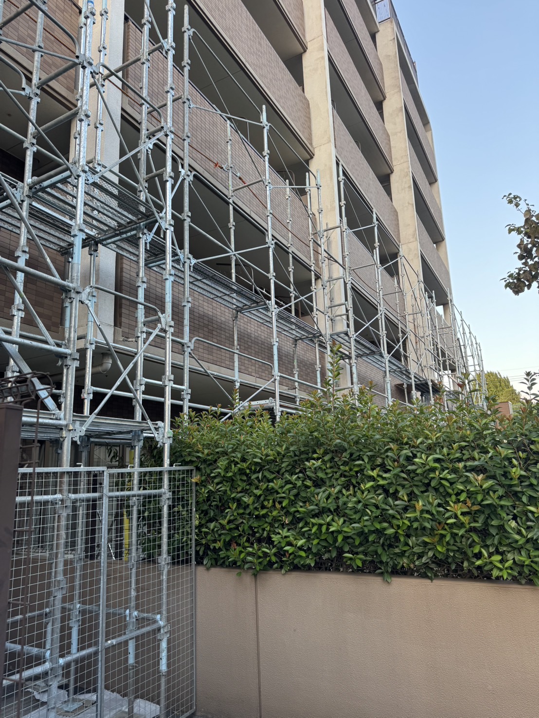 埼玉県さいたま市にて、マンション大規模修繕足場工事、組立着工いたしました。