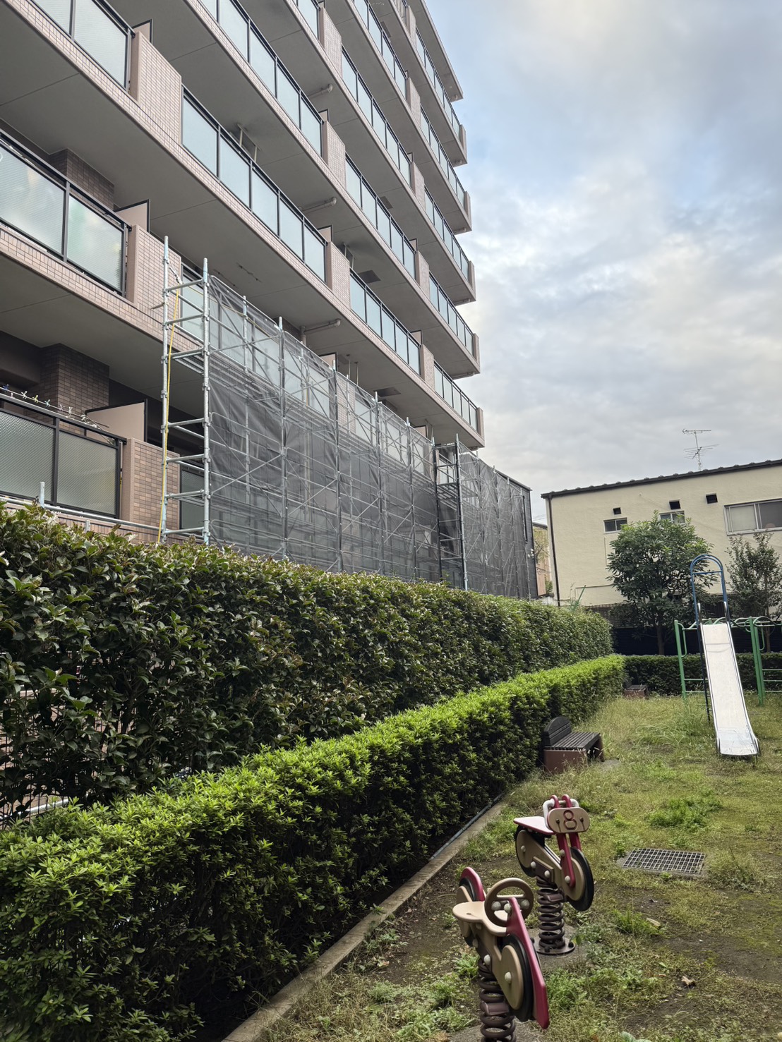 東京都足立区 マンション大規模修繕足場工事【くさび式本足場】